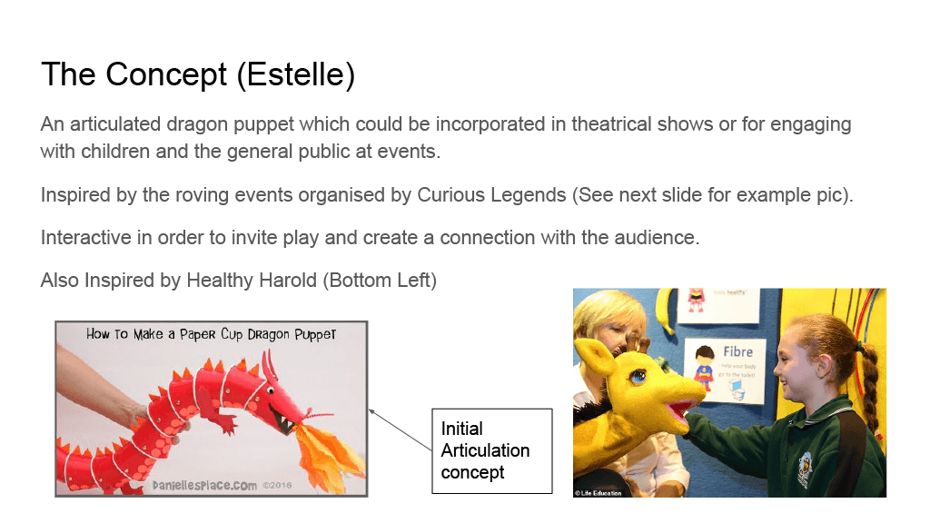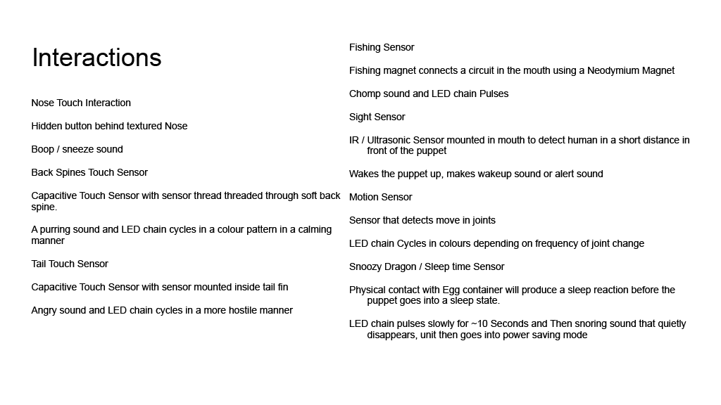 We then presented our pitch called Articulated Dragon Puppet during lab time. The feedback we got from our class was great! Although we have to be careful because of time constraints and the scope of the project may not be done. We rest assured that it is just the ‘blue sky’ level of our concept and we do not have to fulfill each of our numerous interactions, depending on time. I was not able to stay for long during lab time, so I just communicated through Slack to keep myself updated with Estelle and Aaron.