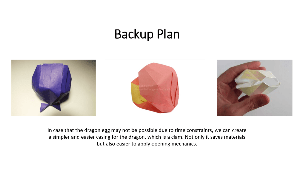 I have realized while doing the dragon egg materials research, we do not have to make a literal egg, because it might be difficult to create the opening mechanism if I ever want to add that. But we can make an ocean clam as the case for the dragon if there is not much time.